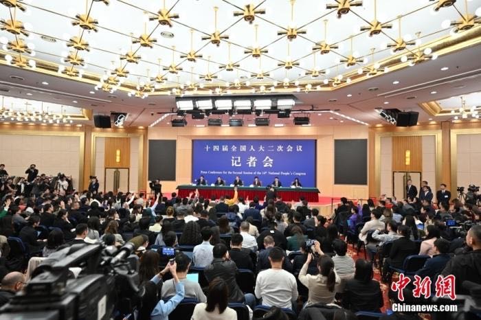十四届全国人大二次会议于3月9日下午3时,在梅地亚中心新闻发布厅举行记者会。中新社记者 何蓬磊 摄
