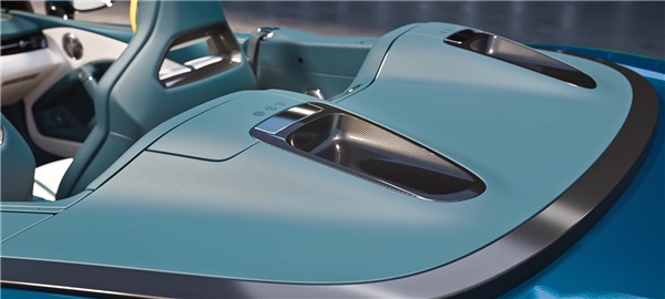 软顶敞篷版采用可伸缩软顶结构,收起后巧妙收纳于后备箱,不占用驾乘空间,座舱采用四座布局,突破传统超跑双座限制更具实用性,内饰仪表屏搭配悬浮式的方形屏,中控区域会提供无线充电面板和控制按键。