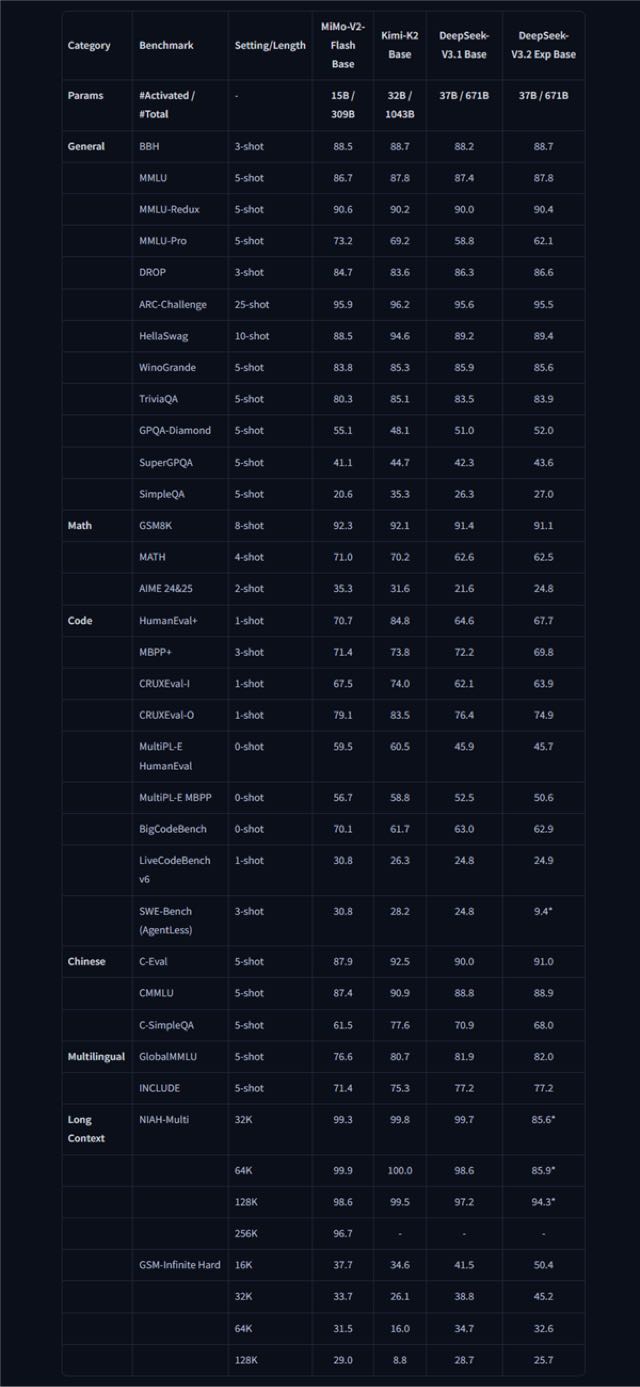 从参数规模来看,MiMo-V2-Flash总参数量达3090亿,激活参数量为150亿,在多项公开基准测试中,其综合表现已跻身当前开源大模型的第一梯队。