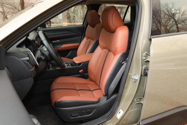 赤陶色内饰选色风格与纯黑经典元素融合呈现,拼色设计表现更显多元。皮质用料在深色内饰的衬托下,材质光泽度得到更优凸显效果。整体组件分置布局,为面板留有较大空旷区间。简洁设计风格拥有更佳表现效果,对于个人使用或家庭来说都是比较适宜的。