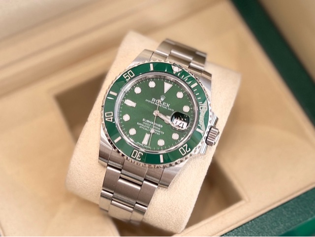 从去年夏天开始,抢购劳力士“绿水鬼”打架事件频频引爆朋友圈一表难求,到货哄抢,导致频繁发生的打架事件行情就一路上涨。不就一块表么,至于连夜排队,打架么?答案是:至于~~想想前几年,绿鬼就是5万多的表,结果今年全新的绿鬼价钱从6万,7万,超公价,甚至有人开出8万、9万的价钱(当然,这个就是瞎标价了)。讲真,我也不知道为什么绿鬼今年能这么火,我总听有人念叨,绿鬼要停产。难道人们真的是因为认为绿鬼要停产,所以产生了“恐慌”导致人们都去买绿鬼?其实不然,最最最最关键点一点,就是绿水鬼辨识度高。亮眼的鲜翠绿,十米开外别人就能看出你手腕上的绿水鬼,攻击面极广的装逼利器。