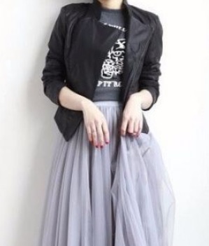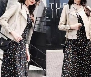 黑色小皮衣是一直很流行的一款服饰,时尚、帅气又百搭、显瘦,搭配一条长裙,帅气中又带着女人味。【足记网】