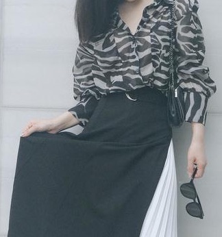 在穿衬衣+百褶裙时,我们可以将衬衣塞进百褶裙里,使得宽松的衬衣稍显“紧绷”,更加凸显我们的身材曲线。百褶裙长度不用太长,漫到小腿处刚刚好,不遮挡住脚踝,配合百褶裙高腰的设计,这让即使身高不足160CM的女生,也有一种腿长的视觉感,达到一种完美的“人工”黄金比例,气质感十足。