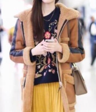 2、黄色裙子+棕色外套