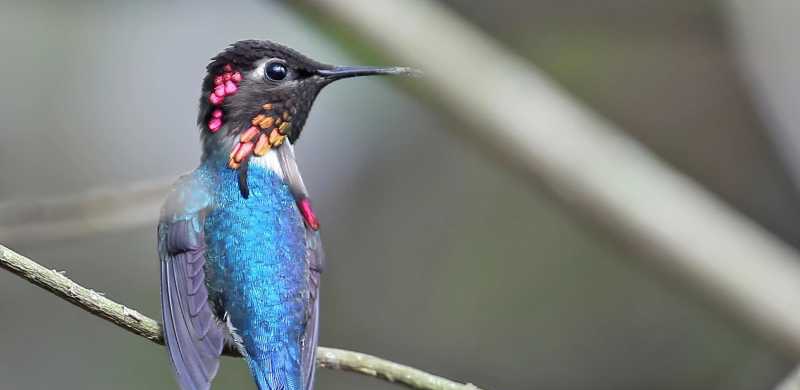 美丽的雄性科丽羽蜂鸟在树枝上