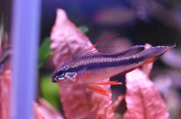 刀锋鳍士也是一种深海鱼,它们喜欢栖息在珊瑚丛中,因有着刀锋一般的背鳍而得名,它们的体长只有4厘米左右,所以极难捕捉,价格也很昂贵。