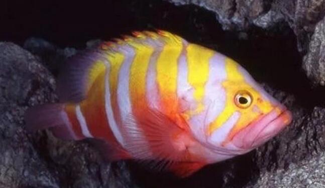 澳洲金龟鲈鱼有着艳丽的条纹和色彩,被认为是世界上最难捕捉的鱼类之一,它们游动速度极快,而且喜欢隐藏在岩石下面,号称“拒捕高手”。