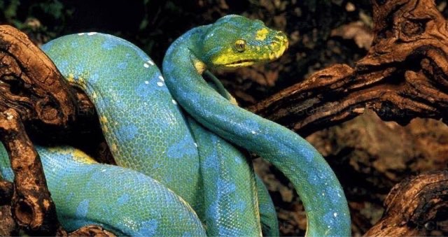 蓝蛇,也叫蓝血蛇,一般指的是蓝化的绿树蟒,是世界上最贵的蛇。是绿树蟒蓝色变异的一种,属于绿树蟒的变异,无毒,蓝蛇这个地球上非常罕见的一种变异蛇, 成年蓝蛇售价接近50万美元,约合350万人民币,而且是有价无市。因其高价值常遭到不法之徒的捕杀,目前相关国家已经加强了保护,维护其生态多样性。分布在印尼、新几内亚及澳洲的雨林,蓝蛇蛇身上密布蓝斑点,而且每次褪皮后蓝斑点都有增多和扩大,非常漂亮、非常诡异。