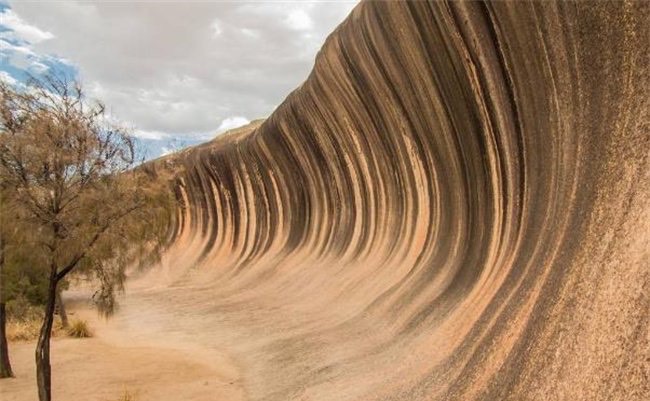 在澳大利亚有一个被称之为是比较坚强的海浪,曾经在25亿年前就形成,直到现在都屹立不倒,这让很多人都觉得比较敬佩,也被称之为世界奇观,这就是波浪岩。波浪言从远处一看就好像是即将要破碎的海浪一样高,差不多达到了15米长100米左右。然而这一个地方目前已经成为了著名的旅游景区,事实上波浪岩并不是真实的海浪,只不过形状相似而已。