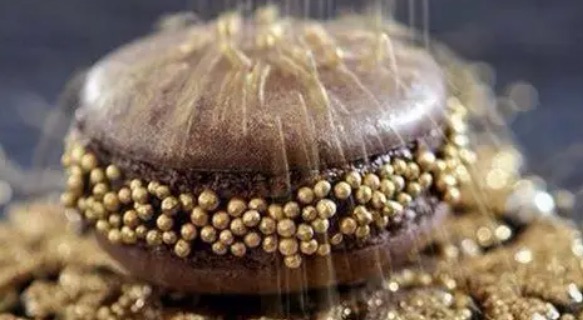 售价100美金(约647元人民币),这款裹满金箔的限量版马卡龙,是巴黎著名甜品店Ladure和时尚品牌Marni合作推出的。