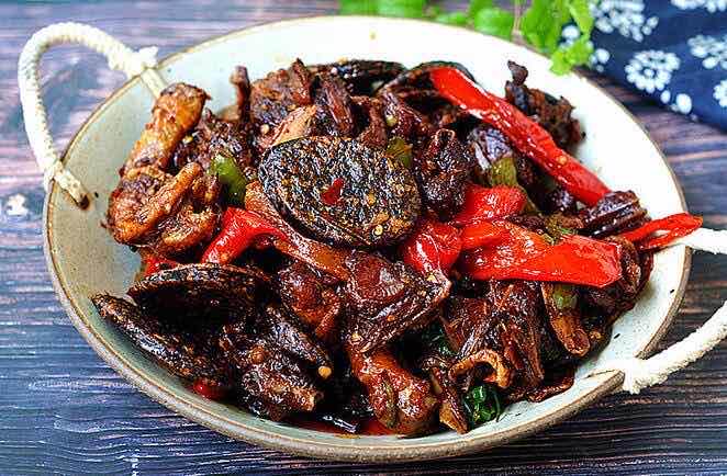 大家都听过血粑鸭子吧?没错,这就是湖南美食中最最出名的一道菜,它是用鸭血和糯米制作而成,既有糯米的香糯,又有鸭肉的鲜美。在凤凰当地,血粑鸭子也是很受欢迎,喜欢吃辣的朋友不要错过它,这是在其他地方吃不到的一道菜哦!