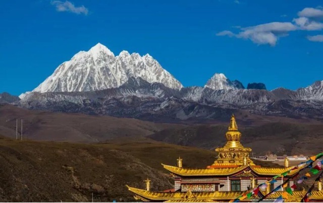 在川西的塔公寺前,应该是看雅拉雪山层次最丰富的地方,景象十分壮观,有塔公寺的陪伴,背后的雪山显得不那么孤独了。