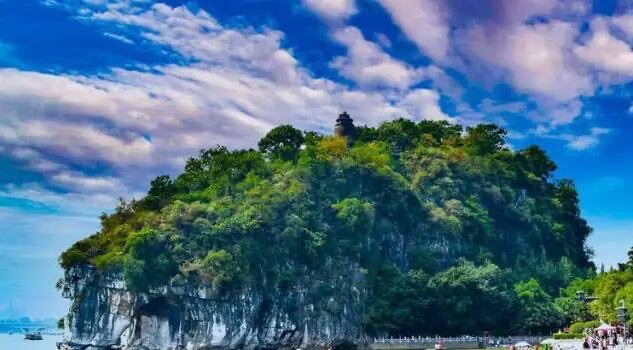 象鼻山因整个山形酷似一头驻足漓江边临流饮水的大象而得名,简称象山,是桂林山水的代表和桂林城的象征,桂林乃至广西地方产品多以象山作为标记。已故国家领导人杨尚昆同志曾说:“在象鼻山前要照像,才算来过桂林,这是独一无二的风景。”
